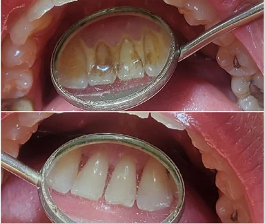 Raspagem e alisamento para remoção de tártaro, profilaxia – escovação profissional e polimento, jato de bicarbonato para remoção de manchas.